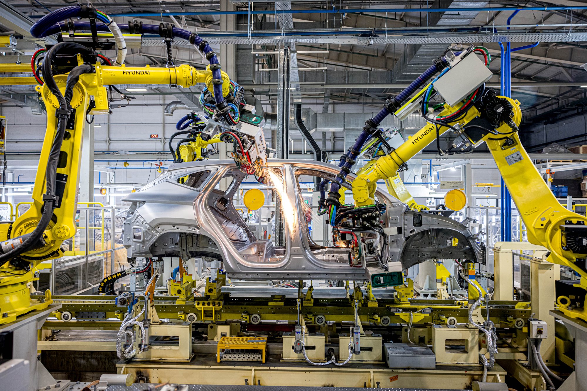 Алматыдағы Hyundai Trans Kazakhstan зауытындағы роботтандырылған дәнекерлеу